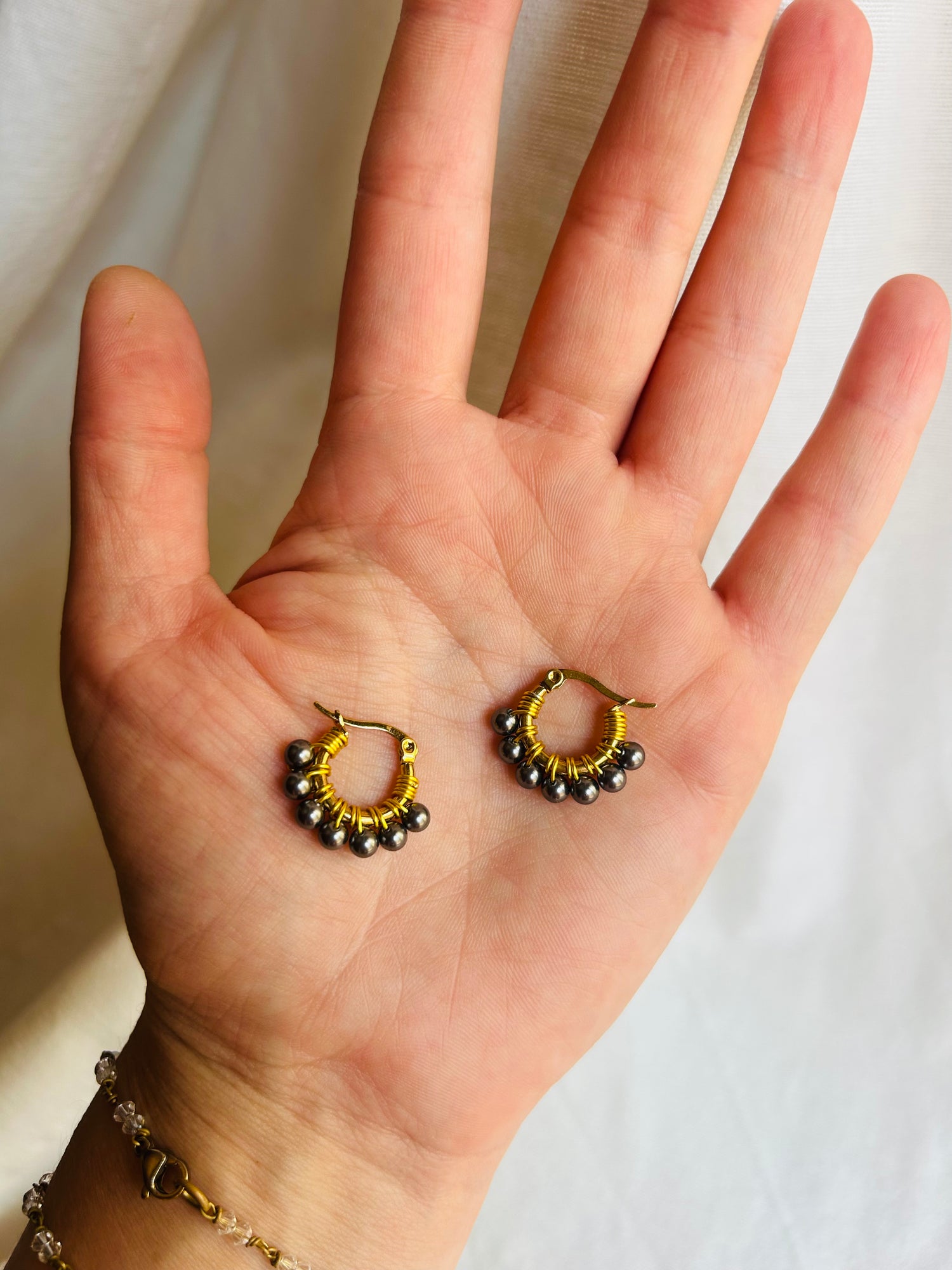 min acciaio inossidabile placcato oro con perle Swarovski grigie.