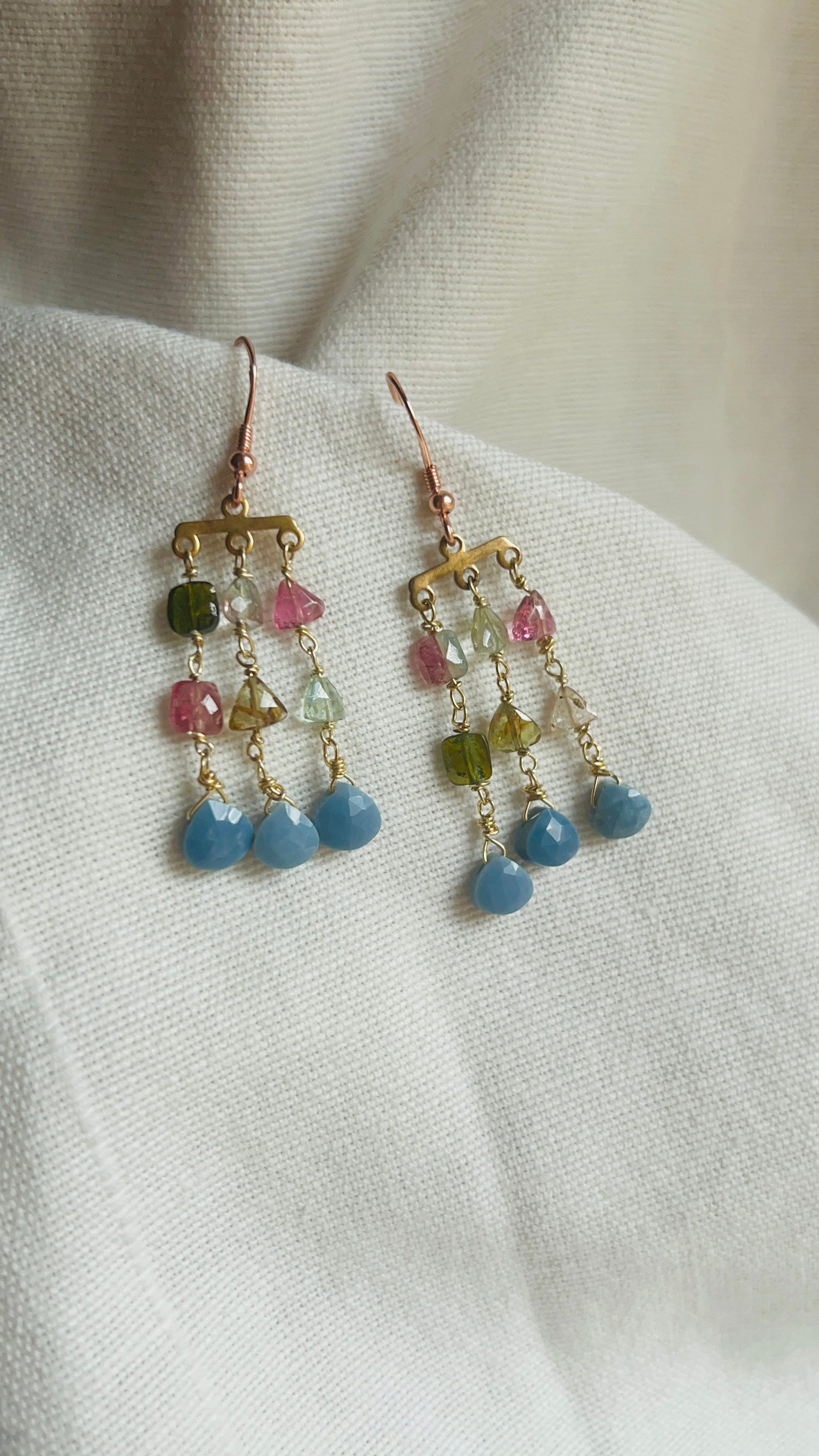 Orecchini gancio monachella in Argento925 placcato oro rosa con pietre naturali Ammagliate a mano con filo in Argento925 placcato oro.